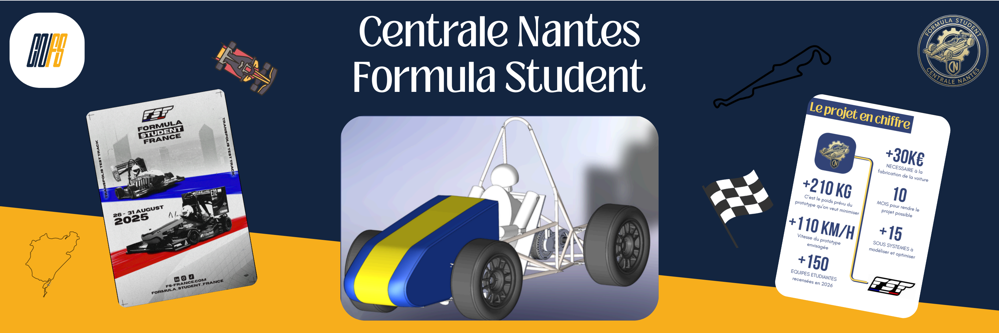 We are Centrale Nantes Formula Student, a student-led team dedicated to designing, building, and racing a single-seat competition car from scratch every year.